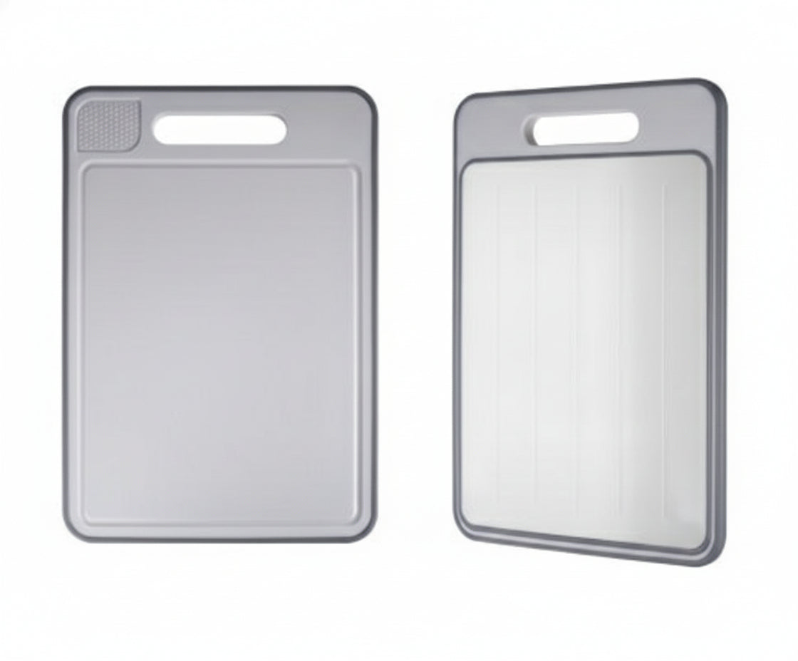 Frost&Prep™ är en dubbelsidig skärbräda där ena sidan fungerar som upptiningsplatta i aluminium som leder värme snabbt, vilket gör frysta råvaror klara mycket fortare utan el. Den andra sidan är en slitstark skäryta.
