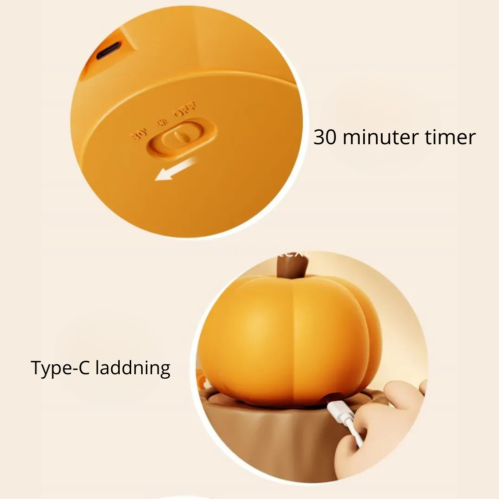 Den gulliga pumpaformen och de mjuka färgerna gör lampan till både en praktisk nattlampa och en fin inredningsdetalj. Fungerar även som mobilhållare.
