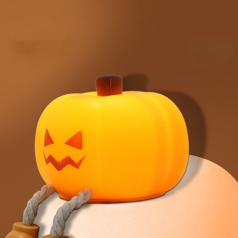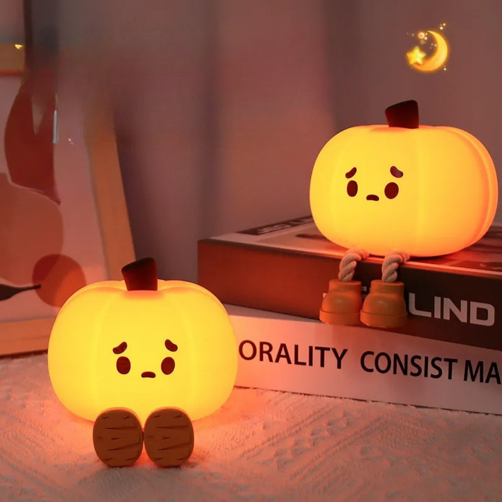 Den söta pumpa-nattlampan är tillverkad av barnvänlig, BPA-fri silikon som känns mjuk och skön att ta i.