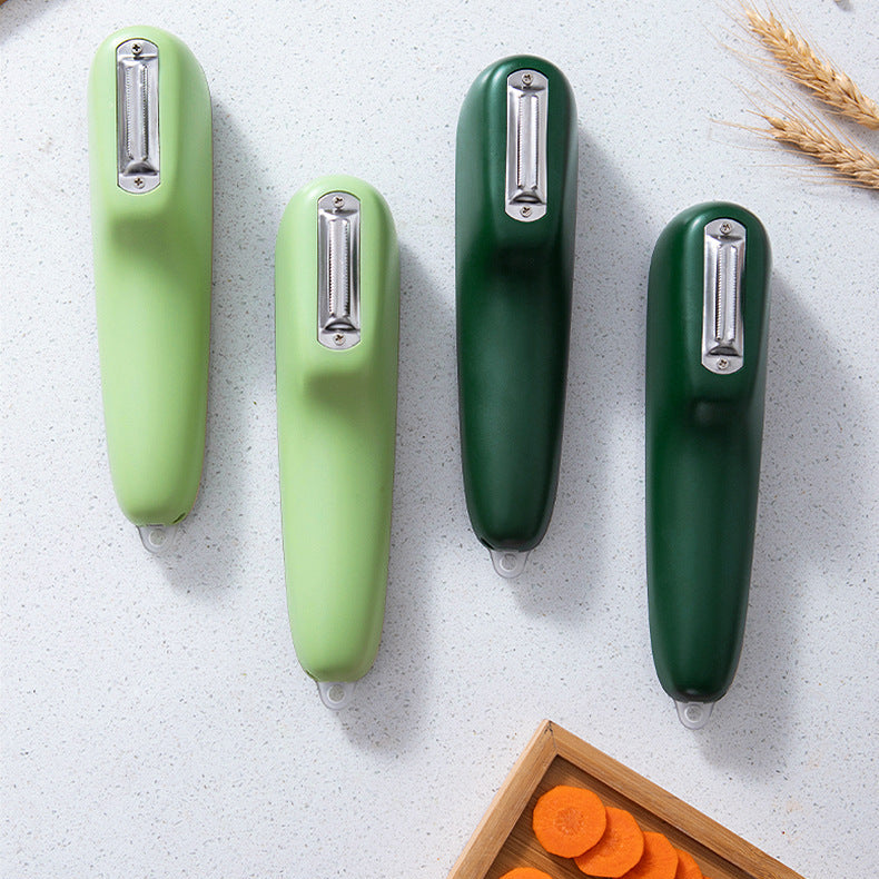 Ny designad frukt- och grönsaksskalare med integrerad uppsamlingsbox som gör köksarbetet renare och mer praktiskt. Förvaringsboxen kan öppnas för enkel rengöring av skalrester. Det rostfria stålbladet är hållbart och lätt att rengöra, medan det halkfria handtaget ger bekväm och säker användning. Lätt att använda även för barn som vill hjälpa till i köket.