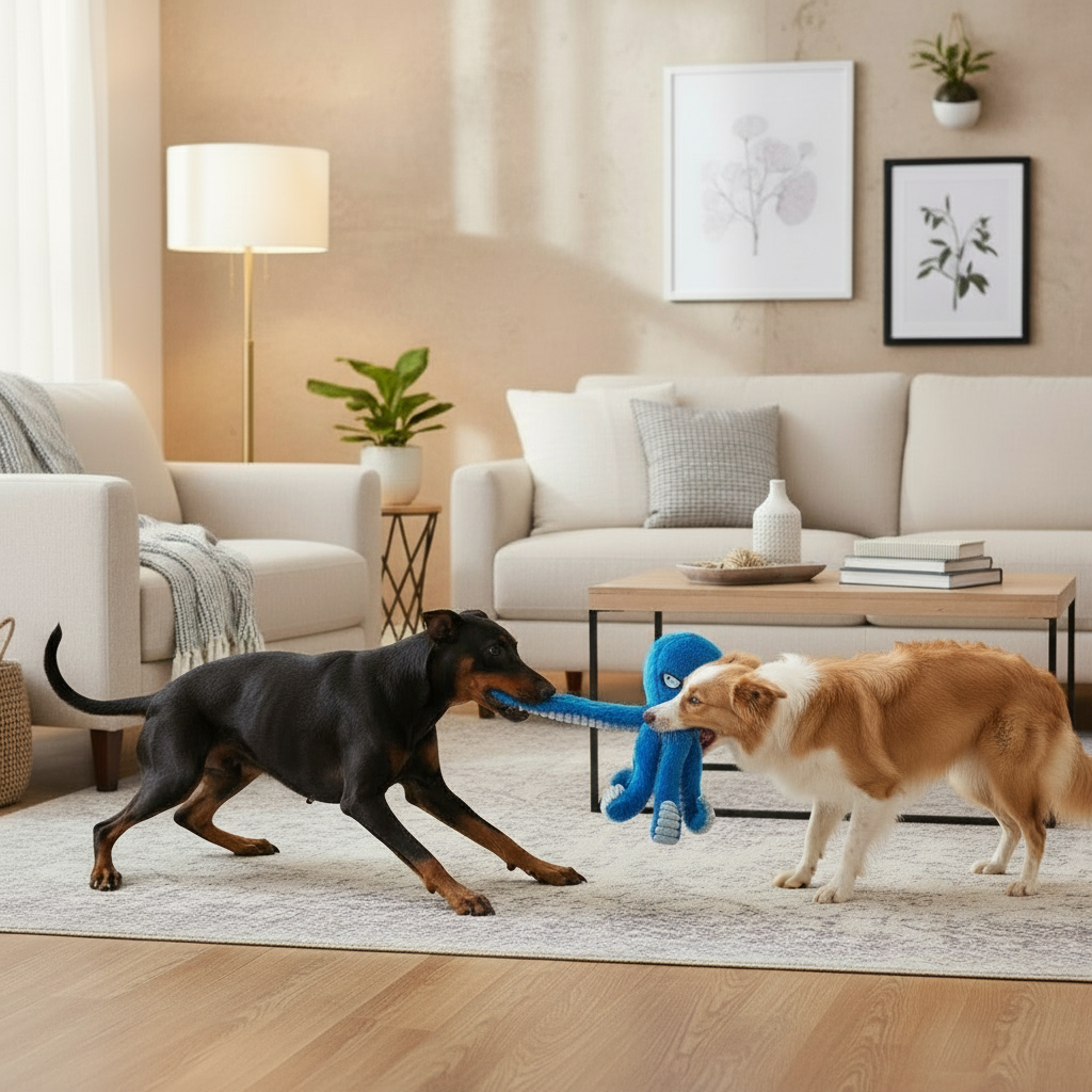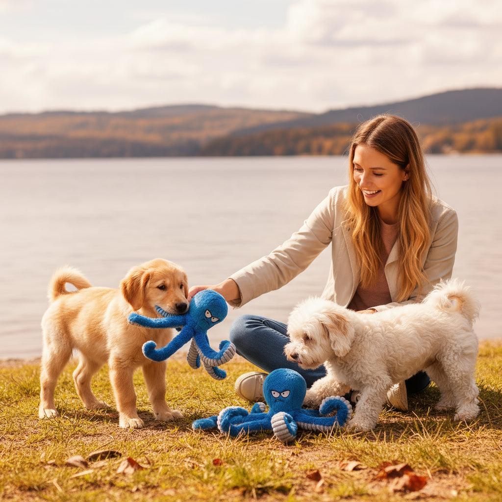 Med sina sex långa ben är den perfekt för dragkamp med flera deltagare – hela familjen kan vara med! Kroppen är lätt, mjuk och rörlig, vilket gör den enkel att bära runt och leka med, även för större hundar.